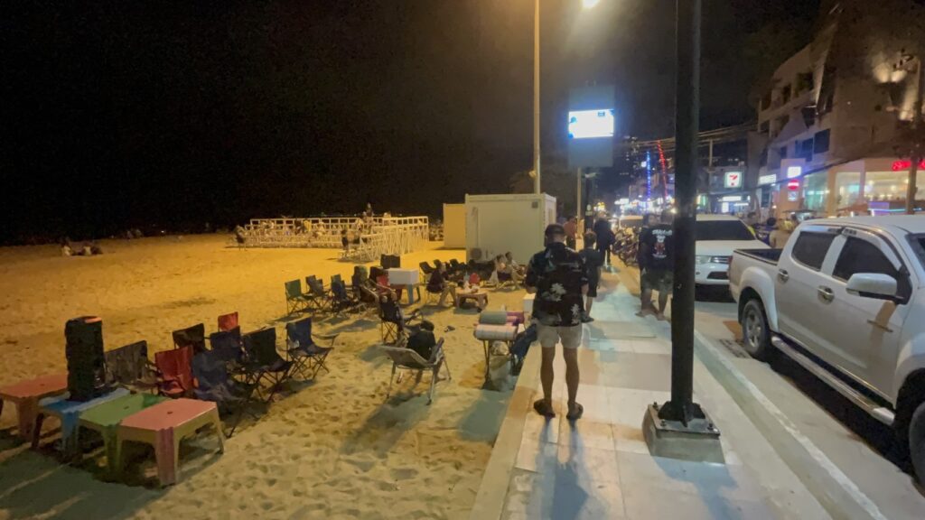 จากการลงพื้นที่ไปยังชายหาดจอมเทียน พบว่ามีการจำหน่ายพลุจริง ลักษณะเดินจำหน่ายพลุให้กับนักท่องเที่ยว และมีการจุดประทัดส่งเสียงดังจริง นอกจากนี้ ยังมีคนยึดพื้นที่สาธารณะแบ่งโซนกันปล่อยให้เช่าโต๊ะ เสื่อ และลำโพงขนาดใหญ่ ลงไปตั้งในพื้นที่ชายหาดสาธารณะ ให้ผู้เช่าลงไปตั้งวงดื่มสุรา และสิ่งผิดกฏหมายอื่นๆ อย่างเกรงกลัวต่อเจ้าหน้าที่บ้านเมือง.