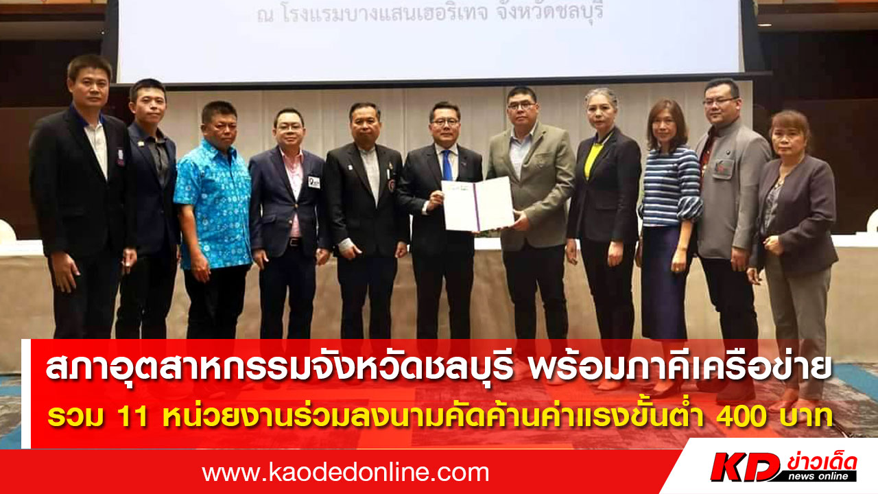 สภาอุตสาหกรรมจังหวัดชลบุรี พร้อมภาคีเครือข่าย รวม 11 หน่วยงานร่วมลงนามคัดค้านค่าแรงขั้นต่ำ 400 บาท พร้อมเสนอแนะให้ยกระดับรายได้ของค่าแรงตามฝีมือแรงงาน