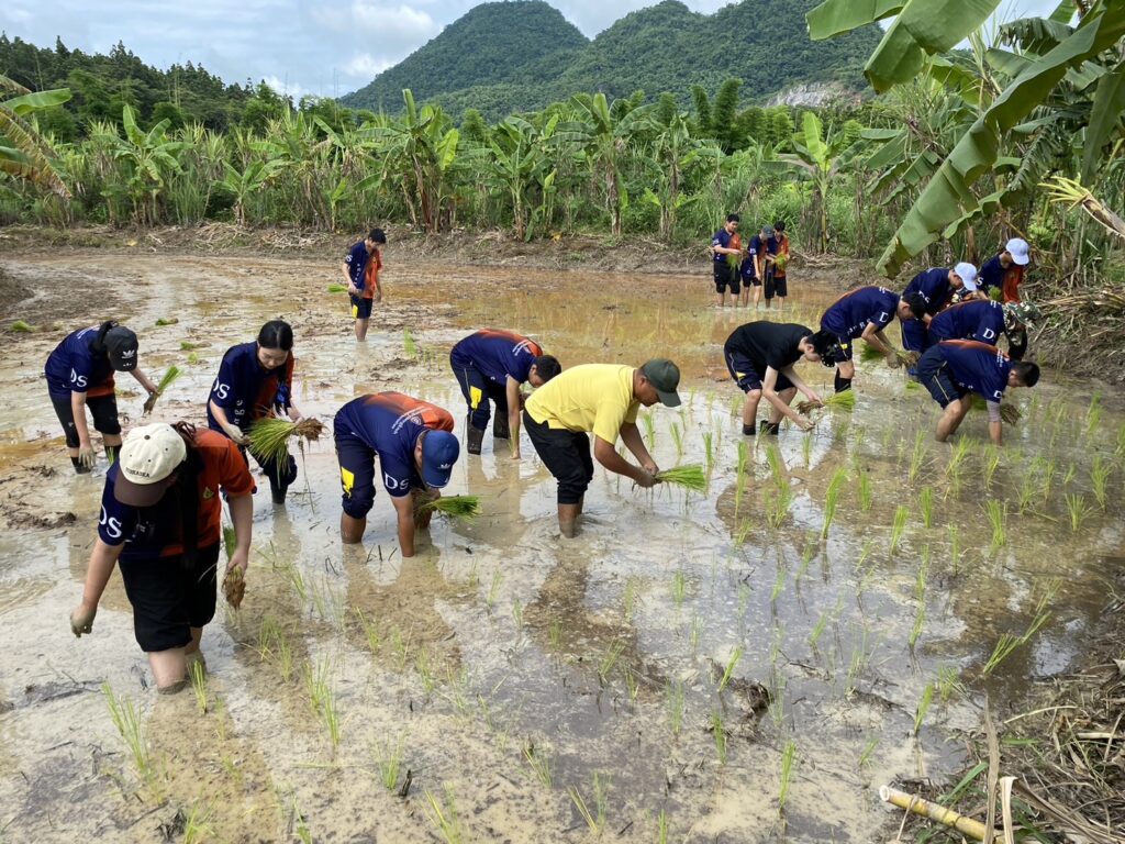 สำหรับกิจกรรมครั้งนี้โดยร่วมกันทำความดีด้วยหัวใจน้อมถวายเป็นพระราชกุศลฯ ภาคเช้า นักเรียนจิตอาสาดำนา ขณะที่วิสาหกิจชุมชน ร่วมทำบุญแจกข้าวสาร ถวายภัตตาหารเพลแด่พระสงฆ์