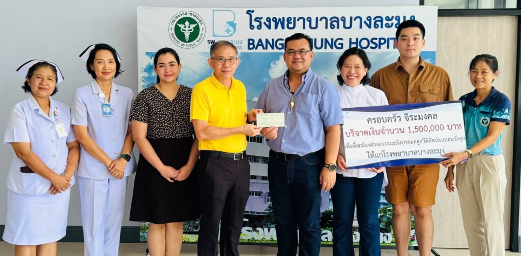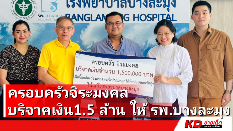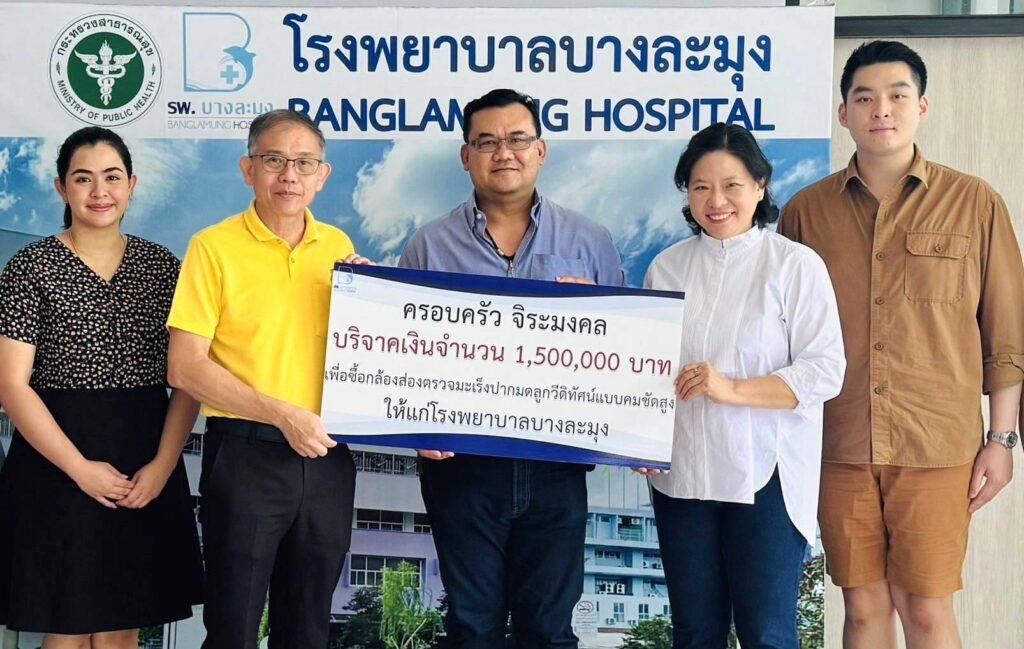 ครอบครัวจิระมงคล นักธุรกิจใจบุญ บริจาคเงิน 1.5 ล้าน ให้ รพ.บางละมุง