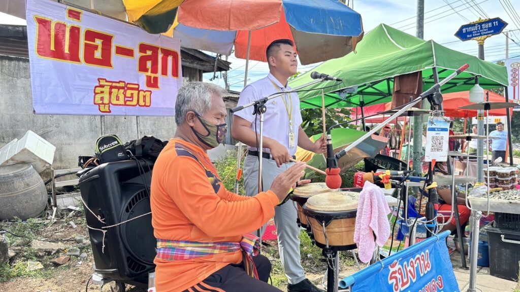 โดยที่ในครั้งนี้ผู้สื่อข่าวได้ทำการไปพบปะพูดคุยกับทั้งสองคนพ่อลูกกันที่ ตลาดจีนโบราณ ชุมชนชากแง้ว ต.ห้วยใหญ่ อ.บางละมุง จ.ชลบุรี โดยที่ในจุดนี้ก็จะเป็นย่านชุมชนเก่าแก่ของคนไทยเชื้อสายจีนตั้งแต่อดีตจนถึงปัจจุบันที่ได้เป็นตลาดชุมชนประจำวันเสาร์ ซึ่งก็เป็นอีกหนึ่งสถานที่ท่องเที่ยวยอดนิยมในพื้นที่ ทำให้สองพ่อลูกได้ตัดสินใจมาเล่นดนตรีเปิดหมวกกันที่นี่ 2 พ่อลูกอาศัยอยู่ด้วยกันมาตั้งแต่ยังเล็กๆ คุณพ่อชื่อว่าคุณไมค์หรือว่าใครหลายๆคนก็อาจจะเรียกว่าลุงไมค์ และลูกชายวัย 17 ปี ชื่อว่าเนสต้า หรือนายธนาเทพ สร้อยที