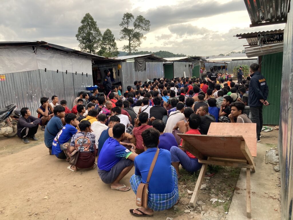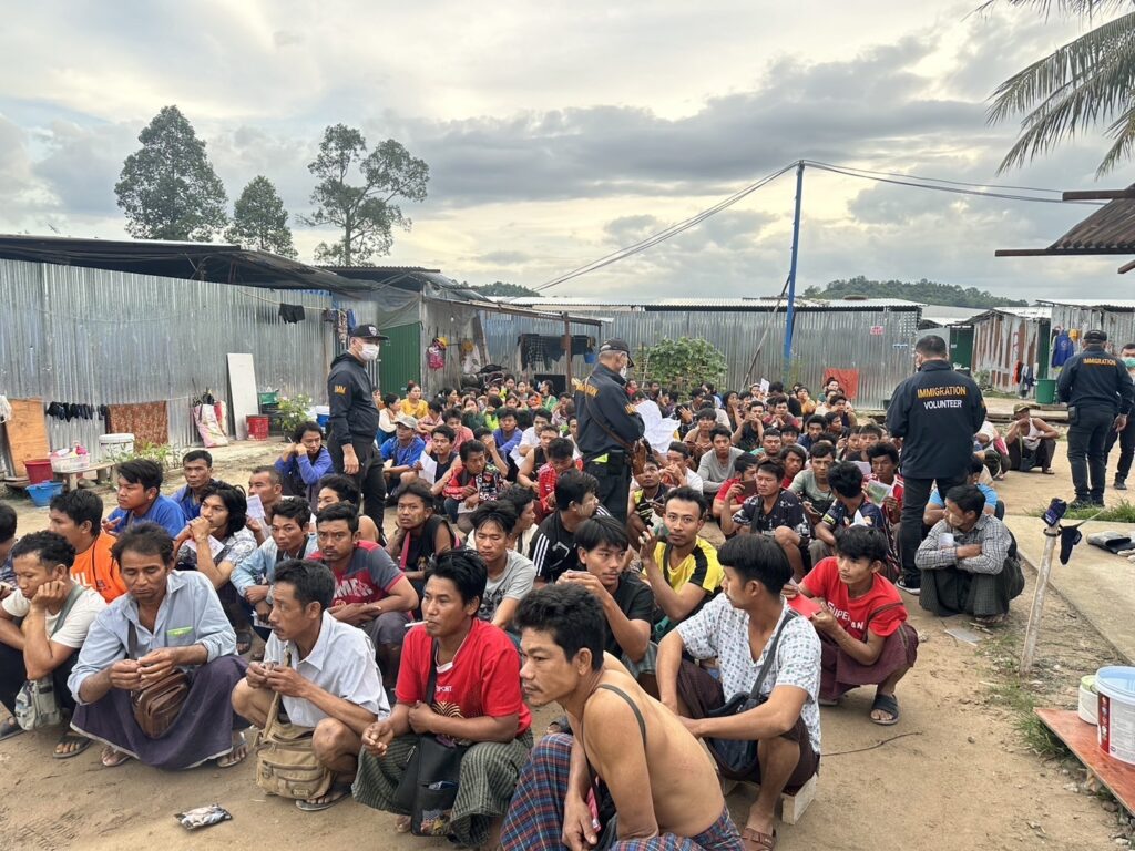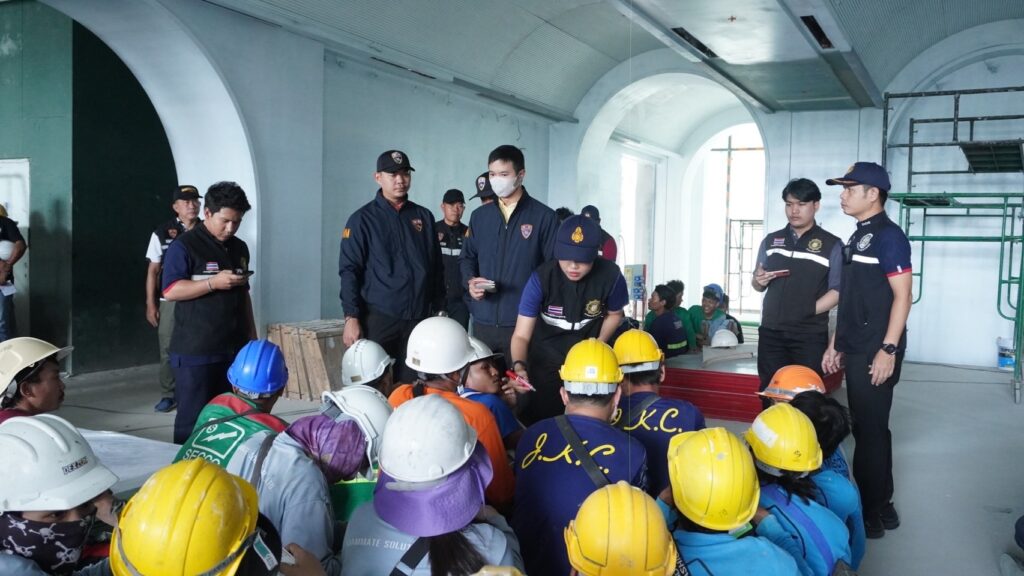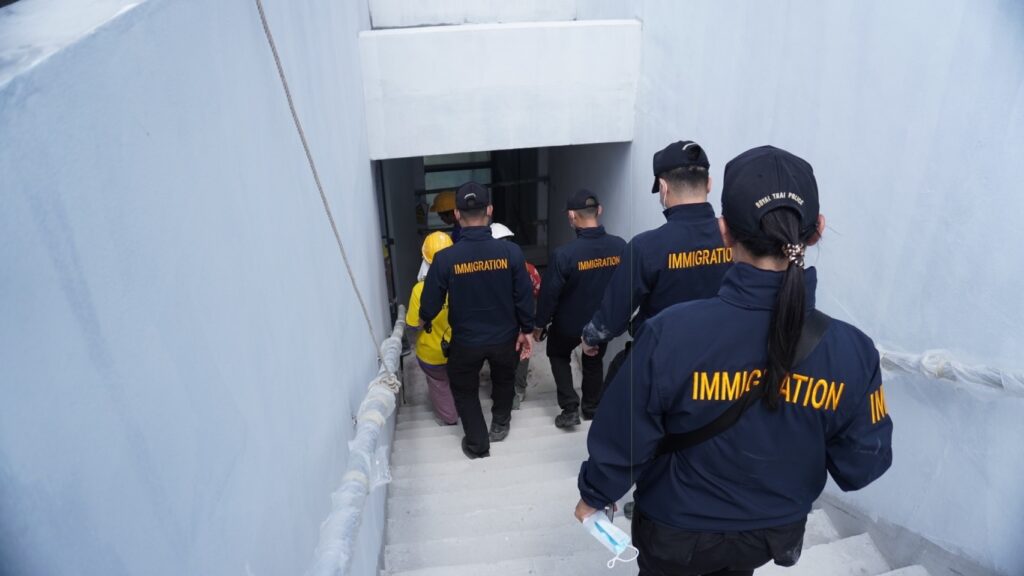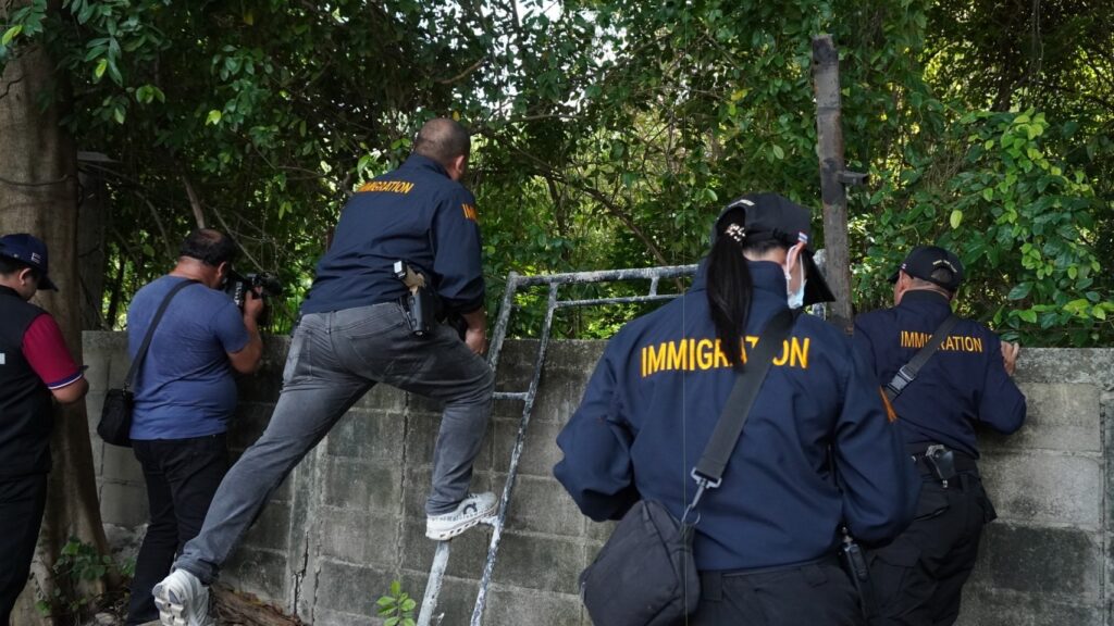 7 พฤศจิกายน 2567 – เวลา 13.11 น. พ.ต.อ.นภัสพงษ์ โฆษิตสุริยมณี ผกก.ตม.จว.ชลบุรี พร้อมด้วย พ.ต.อ.จิรพงศ์ รุจิรดำรงค์ชัย ผกก.สส.บก.ตม.3 และนายวุฒิชัย รอดจร นักวิชาการแรงงานชำนาญการ สำนักงานจัดหางานจังหวัดชลบุรี สนธิกำลังกว่า 50 นาย ปิดล้อมตรวจค้นไซต์งานก่อสร้างโรงแรมหรูแห่งหนึ่ง ถนนพัทยาสายสอง จ.ชลบุรี