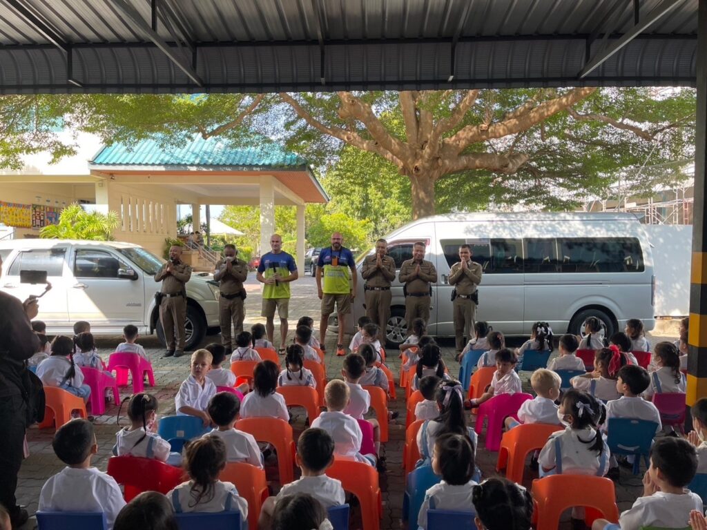 18 พฤศจิกายน 2567 – ผู้สื่อข่าวรายงานว่า ที่โรงเรียนตันตรารักษ์ พัทยาเหนือ จ.ชลบุรี พ.ต.ท.ภาณุพงศ์ นิ่มสุวรรณ์ สว.จร.สภ.เมืองพัทยา นำทีมเจ้าหน้าที่ตำรวจชุดมวลชนสัมพันธ์ สภ.เมืองพัทยา และนายแซฟวี่ ริค บราวน์ ยูทูปเบอร์แจกหมวกกันน็อคชาวอเมริกัน ได้ร่วมกับผู้บริหาร และคณะครู ร.ร.ตันตรารักษ์ ในการจัดอบรมให้ความรู้สอนทักษะการเอาตัวรอดเมื่ออยู่ในสถานการณ์ฉุกเฉินบนรถโดยสาร