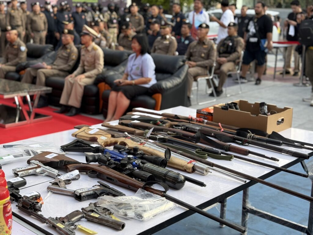 ขณะที่ภาพรวมผลการปฏิบัติการของสถานนีตำรวจ 23 แห่งทั้งจังหวัดชลบุรี สามารถจับกุมคดี พรบ.อาวุธปืน ได้ผู้ต้องหารวม 42 ราย ยึดอาวุธปืนพกสั้นและอาวุธปืนยาว แบบแบลงก์กันและไทยประดิษฐ์ จำนวน 23 กระบอก คดียาเสพติด 9 ราย ของกลางยาบ้า 300,000 เม็ด ยาไอซ์ 4.2 กรัม พร้อมจับกุมแก๊งเด็กแว้นชาวคูเวต ขับแข่งขันบนท้องถนนสร้างปัญหาชาวบ้านจำนวน 33 ราย รวมถึงจับกุมบุคคลเร่ร่อนขอทาน 33 ราย และแรงงานต่างด้าวหลบหนีเข้าเมืองเข้าโดยผิดกฏหมายแย่งอาชีพคนไทยและความผิดอื่นๆกว่า 860 ราย