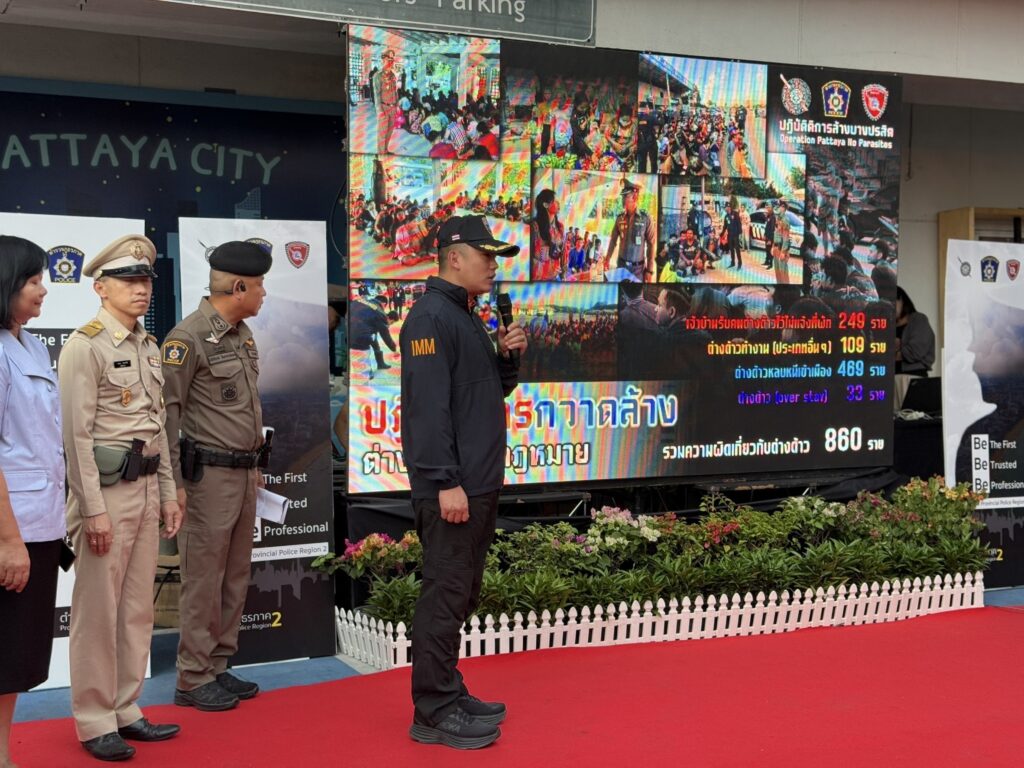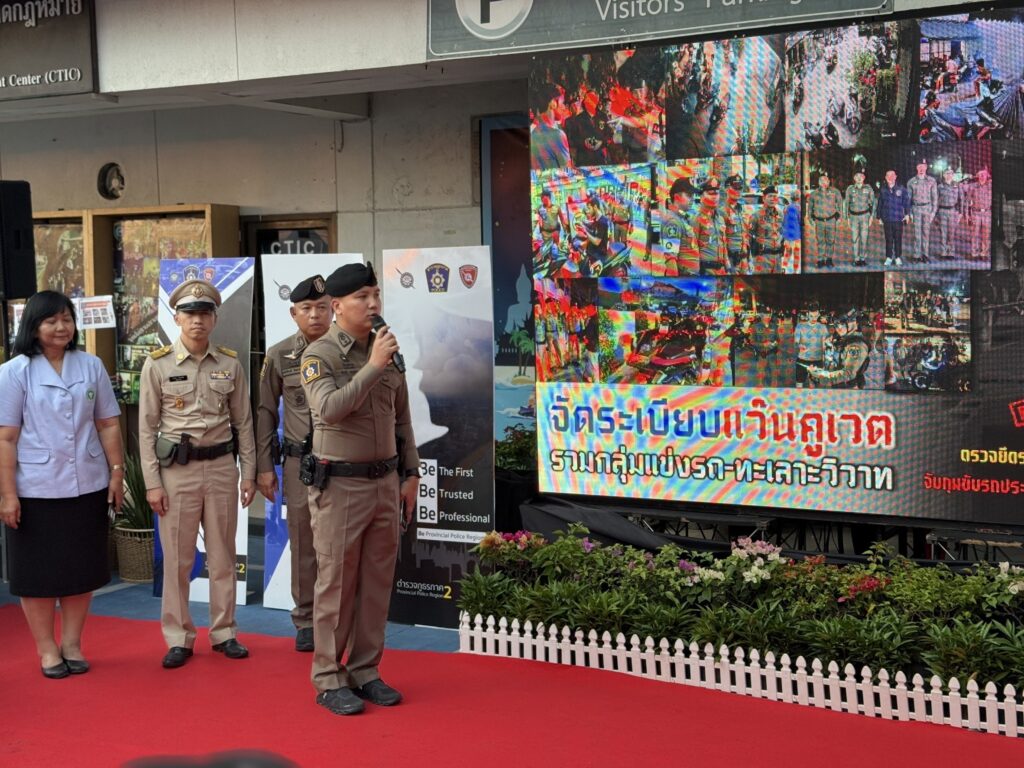 28 พฤศจิกายน 2567 – เวลา 16.20 น. ที่ สภ.เมืองพัทยา พล.ต.ท.ยิ่งยศ เทพจำนงค์ รรท.ผบช.ภ.2 ได้เดินทางมาเป็นประธานแถลงข่าวผลงานการเปิด “ปฏิบัติล้างบางปรสิต“ ในพื้นที่เมืองพัทยา จ.ชลบุรี โดยมี พล.ต.ต.ธวัชเกียรติ จินดาควรสนอง ผบก.ภ.จว.ชลบุรี พร้อมคณะรองผู้บังคับการตำรวจภูธรจังหวัดชลบุรี นำกำลังตำรวจในสังกัด โดยบูรณากำลังที่เกี่ยวข้องกว่า 200 นาย ตั้งแถวรอให้การรับต้อนรับ