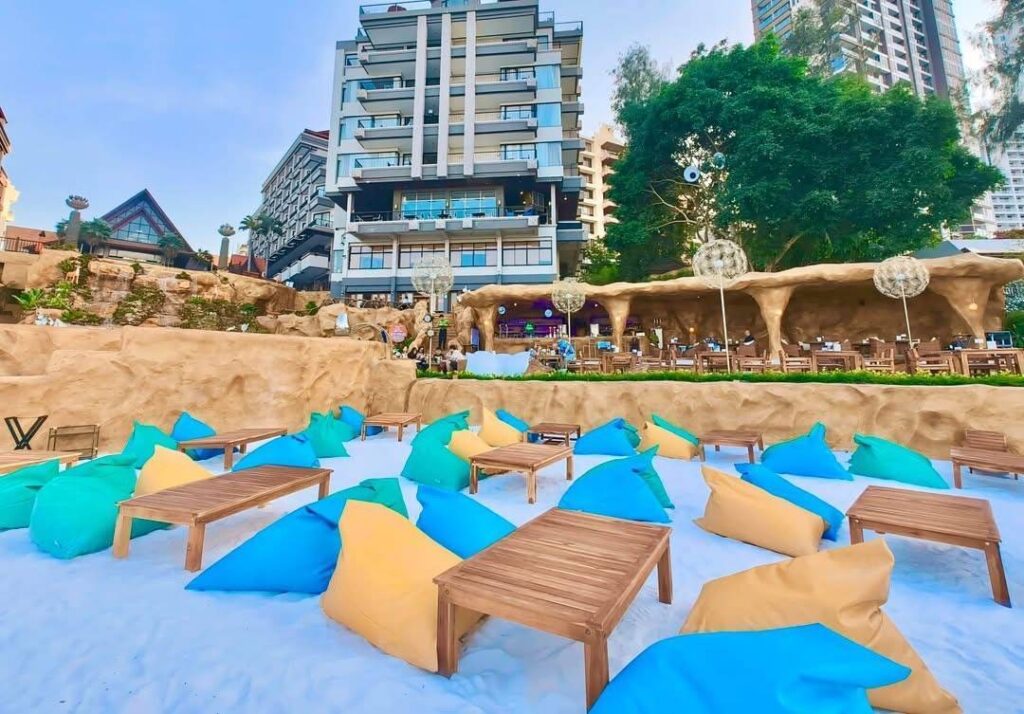 สำหรับ Blue Dragon Cafe and Beach Club ด้านผู้บริหารตั้งใจให้เป็นแหล่งท่องเที่ยวแห่งใหม่ดึงดูดเม็ดเงินเข้าเมืองพัทยาสไตร์คาเฟ่และแฮงก์เอาท์สุดชิลล์สไตล์ Tropical วิวทะเลสวยๆ ชายหาดสีขาวสะอาดตา สถานที่สวย มุมถ่ายรูปมากมาย ที่ซ่อนตัวอยู่ในโรงแรม การ์เด้นคลิฟ รีสอร์ทแอนด์สปา เดินทางจากกรุงเทพฯไม่ไกล ในพื้นที่ยังมีการตกแต่งหน้าผาหินและน้ำตกขนาดยักษ์ที่ตกแต่งได้สวยงาม อารมณ์เหมือนไปติดเกาะส่วนตัว private สุดๆเพราะมีทั้งแบบ outdoor และ indoor cafe ตกแต่งสไตล์ tropical ติดริมทะเลแบบสวยช้ำ รับลมทะเลแบบฟินๆ มีทั้งในส่วนของบาร์ คาเฟ่ และร้านอาหาร