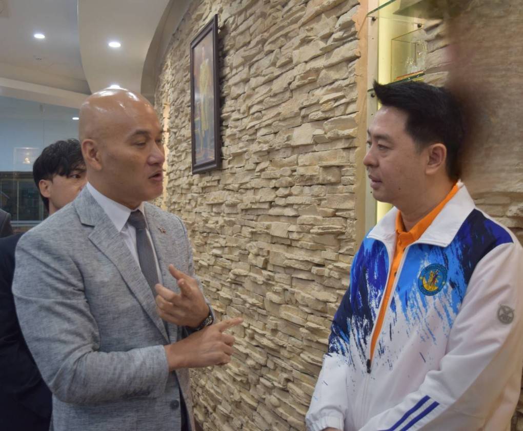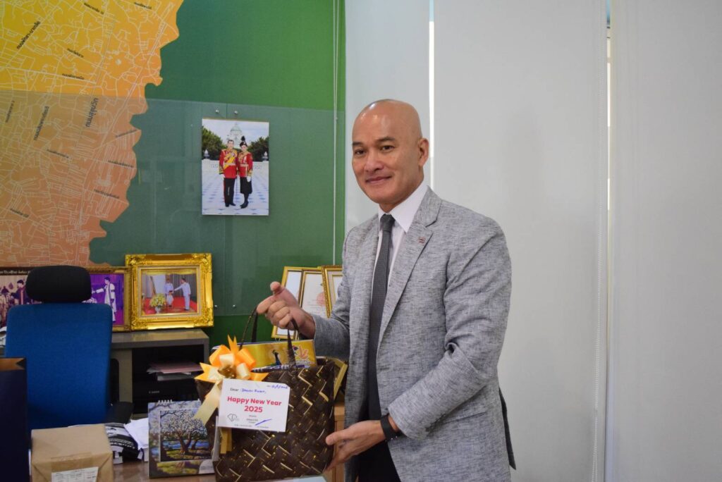 นายเอ็ดเวิร์ด กิตติ นายกสมาคมส่งเสริมผ้าไหมและวัฒนธรรมไทย สวัสดีและอวยพรปีใหม่ นายกและผู้บริหารเมืองพัทยา