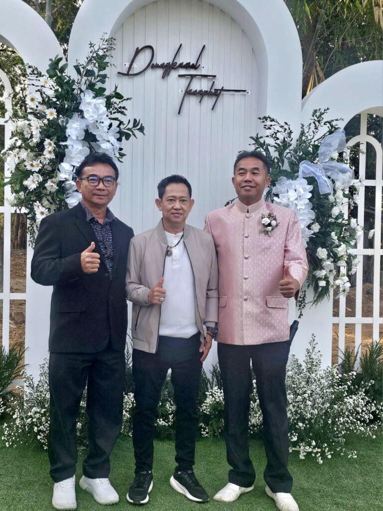 วันศุกร์ที่ 17 มกราคม 2568 เวลา 10.00 น. นายปรเมศวร์ งามพิเชษฐ์ นายกเมืองพัทยา นายไพรัตน์ ไตรศุภโชค นายกเทศมนตรีตำบลห้วยใหญ่ ว่าที่พันตรีชาติชาย ศรีโพธิ์อ่อน นายอำเภอท่าใหม่ จ.จันทบุรี นางสาวกันยากร กุลพรรัตน์ นายอำเภอเกาะจันทร์ จ.ชลบุรี ร่วมเป็นประธานในงานฉลองพิธีมงคลสมรส ระหว่าง นางสาวดวงกมล พิศวง กับ นายธนภัทร ดวงเพชร บุตรชาย นายคุณเศก ดวงเพชร (พี่เสกภูมาเมา) ณ บ้านสวนบุญ ต.ห้วยใหญ่ อ.บางละมุง จ.ชลบุรี