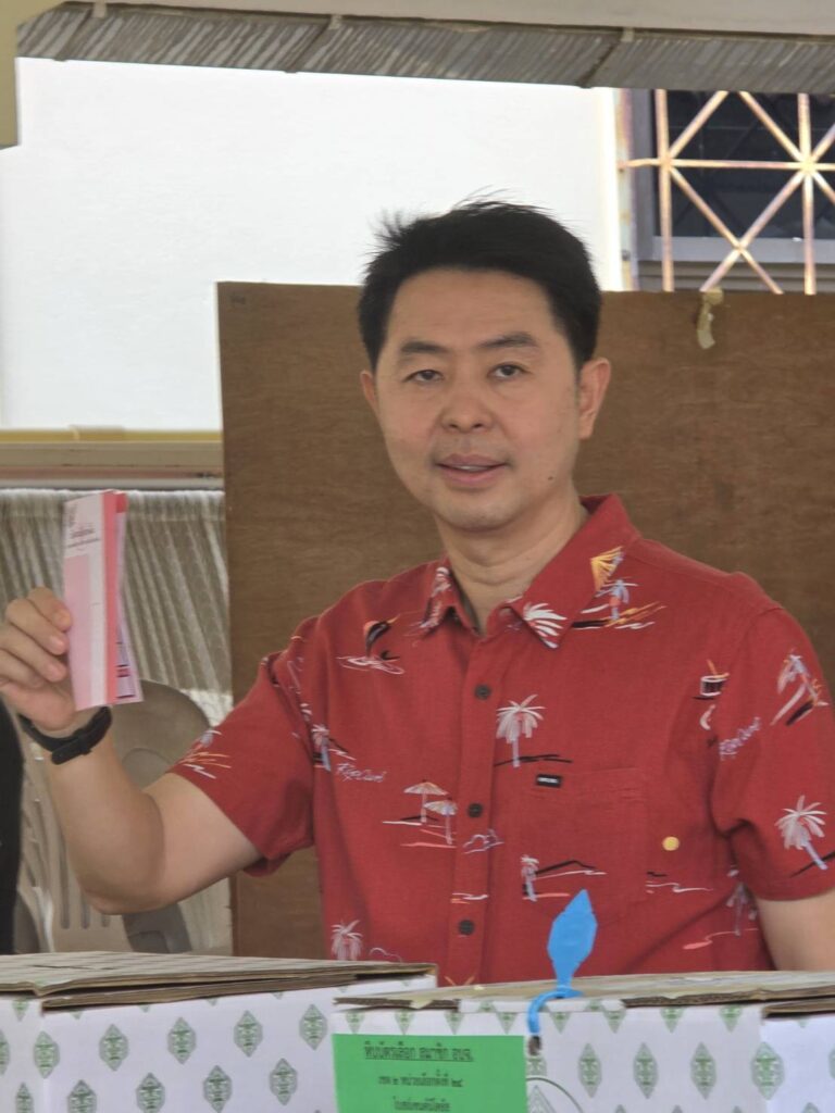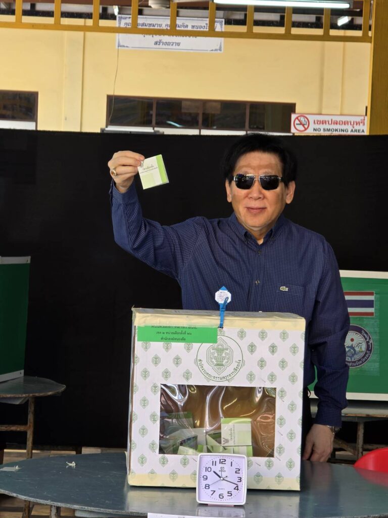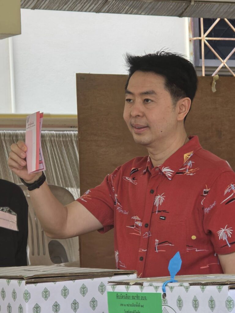 นายกเมืองพัทยา ออกมาใช้สิทธิเลือกตั้ง อบจ.ชลบุรี ตั้งแต่เช้า