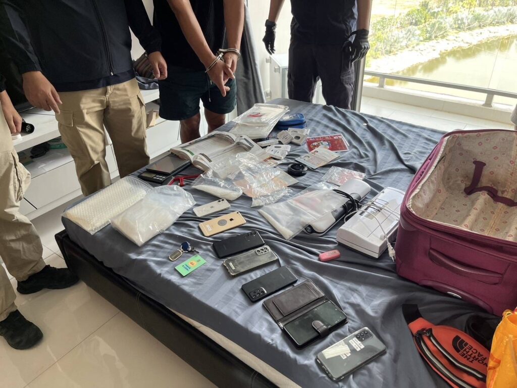 โดยขณะจับกุมได้ตรวจค้นภายในห้องพักพบยาไอซ์กว่า 150 กรัม ซุกซ่อนอยู่ภายในห้องนอน อีกทั้งยัง พบอุปกรณ์โทรศัพท์มือถือ เครื่องสัญญาณ GPS ขนาดเล็ก และอุปกรณ์สำหรับแบ่งจำนวนยาอีกเป็นจำนวนมาก พบของกลางที่ใช้ในการซุกซ่อนยาเสพติด เช่น หนังสือที่เจาะช่องลับตรงกลางเพื่อซุกซ่อนยาเสพติด และส่งเป็นพัสดุจากประเทศไทยส่งไปประเทศเกาหลีใต้ จากการตรวจหนังสือเดินทางยังพบว่า Overstay จึงได้ ร่วมกับเจ้าหน้าที่ ป.ป.ส. จับกุม นายลี ชุน ซัม อายุ 51 ปี สัญชาติ เกาหลีใต้