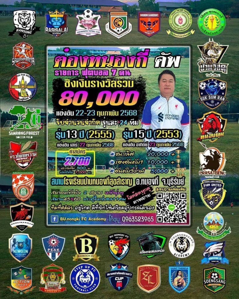 ทั้งนี้การแข่งขันฟุตบอล 7 คน มี 2 รุ่น 13 ปี และ 15 ปี โดยมีทีมแกร่งทั่วประเทศ รุ่นละ 24 ทีม ซึ่งรางวัลชนะเลิศจะได้รับเงินรางวัลรวมกว่า 80,000 บาท โดยแบ่งเป็น เงินรางวัลชนะเลิศ 20,000 บาท ลองอันดับหนึ่ง 10,000 บาท อันดับที่สาม 5,000 บาท….