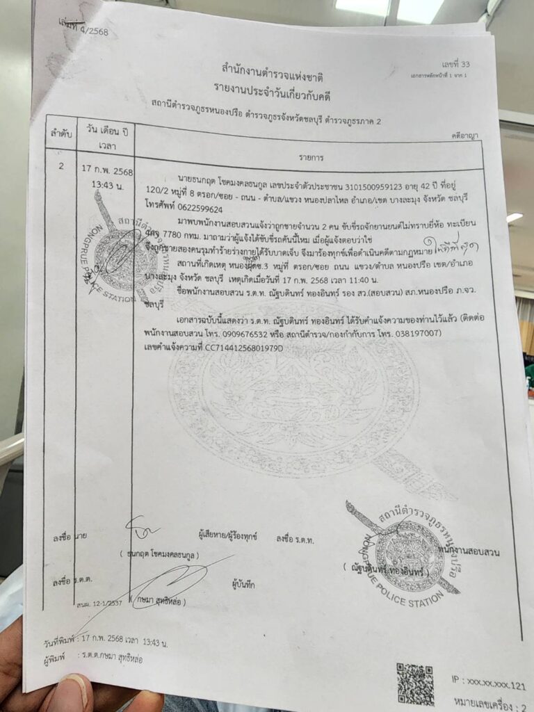 นักธุรกิจพัทยา ร้องสื่อติดตามความคืบหน้าคดีถูกชายฉกรรจ์ 2 คน รุมทำร้ายร่างกายจนได้รับบาดเจ็บสาหัส คนร้ายยังลอยนวล หวั่นเกิดเหตุซ้ำรอย คนในครอบครัวได้รับอันตราย คาดปมธุรกิจอสังหาริมทรัพย์