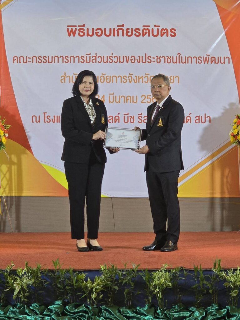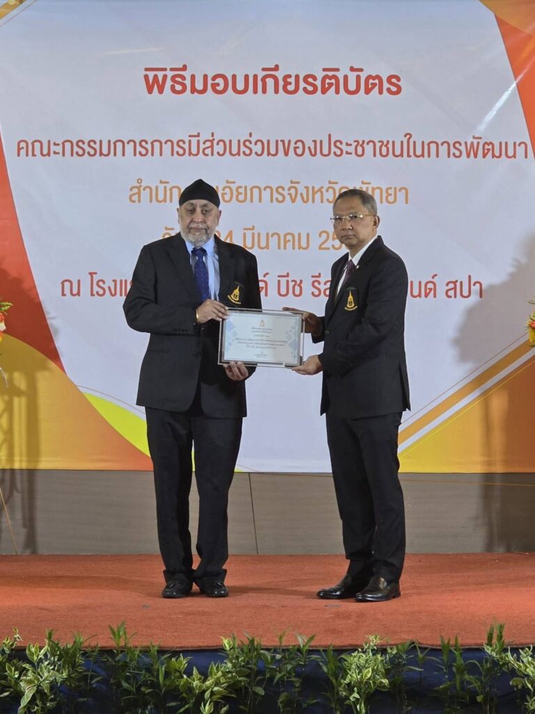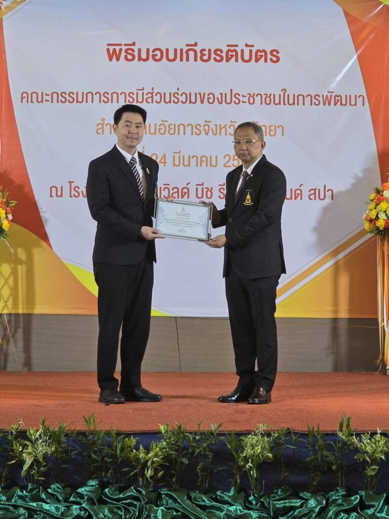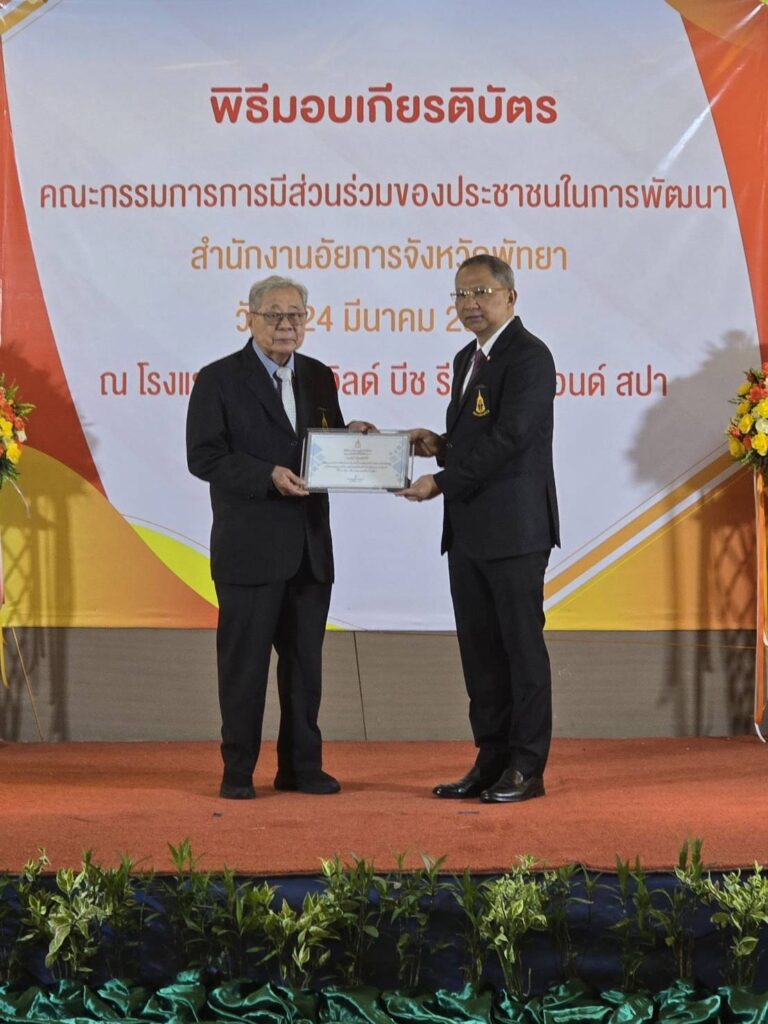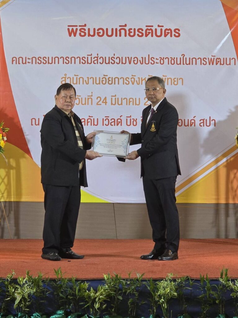 ผู้นำที่ดี​ “นายกเบียร์ “รับเกียรติบัตรคณะกรรมการการมีส่วนร่วมของประชาชน ในด้านการพัฒนา สํานักงานอัยการจังหวัดพัทยา
