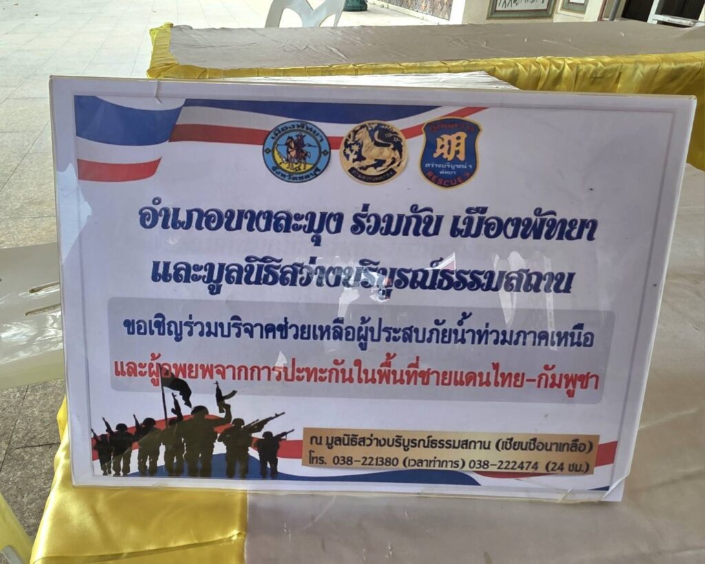 เมืองพัทยา ร่วมกับ มูลนิธิสว่างบริบูรณ์ธรรมสถานฯ พร้อมประชาชนผู้ใจบุญระดมสิ่งของ ช่วยเหลือผู้ประสบภัยน้ำท่วมภาคเหนือ และผู้เดือดร้อนชายแดนไทย-กัมพูชา