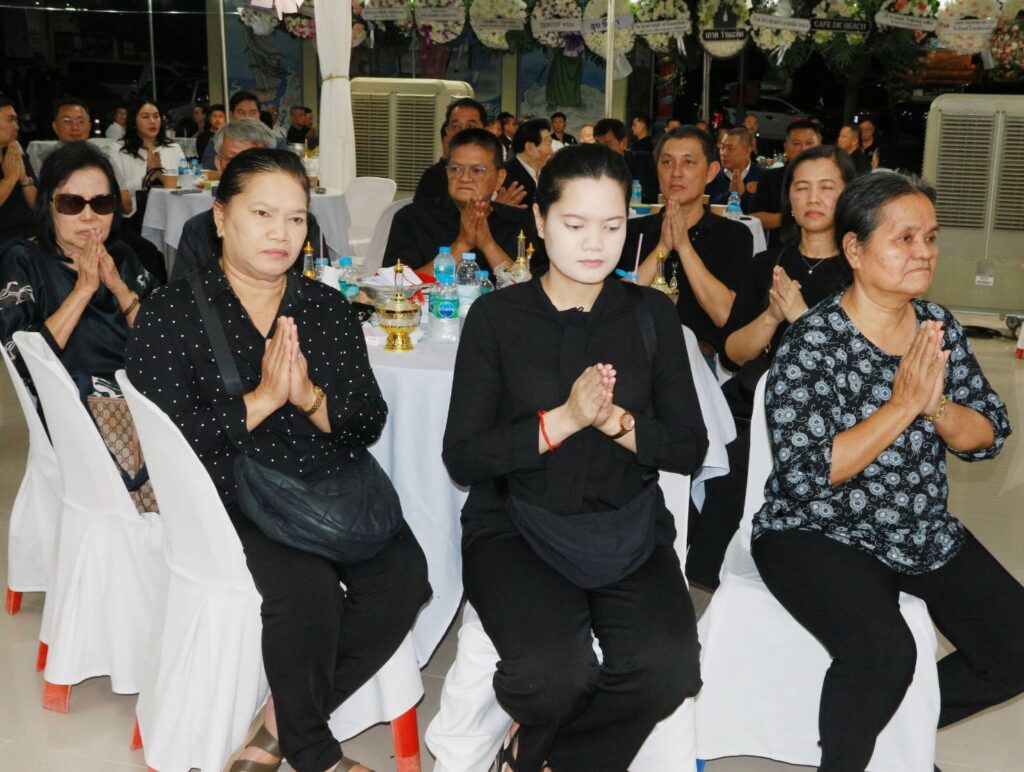 โดยภายในงานมีแขกผู้มีเกียรติร่วมแสดงความไว้อาลัยจำนวนหลายท่าน อาทิ นายเพียรศักดิ์ สมบัติทอง กรรมการ ป.ป.ช., นายอำนาจ เจริญศรี รองผู้ว่าการจังหวัดชลบุรี, พล.ต.ต.ชัยพัชร์ ศรีประเสริฐ รอง ผบช.น., นายชาญยุทธ เฮงตระกูล อดีตที่ปรึกษารองนายกรัฐมนตรีและรัฐมนตรีว่าการกระทรวงดิจิทัลเพื่อเศรษฐกิจและสังคม, พ.ต.อ.สุขทัศน์ พุ่มพันธ์ม่วง รอง ผบก.ภ.จว.ฉะเชิงเทรา, นายเอกสิทธิ์ งามพิเชษฐ์ กรรมการสภาอุตสาหกรรมท่องเที่ยวแห่งประเทศไทย, นายสินธ์ไชย วัฒนศาสตร์สาธร รองประธานมูลนิธิสว่างบริบูรณ์ธรรมสถานเมืองพัทยา, นายอิทธิศักดิ์ รัตนเชษฐ์ พร้อมด้วย นางสาวพรพนา รัตนเชษฐ์ ผู้บริหาร บริษัทในเครือแอล เค กรุ๊ป พัทยา, นางจินตนา นนวรกุล, นายจเร โกสิยานุรักษ์ พร้อมด้วย คณะกต.ตร.สภ.เมืองพัทยา และญาติพี่น้องผู้วายชนม์ ร่วมแสดงความไว้อาลัยพร้อมเพรียง..