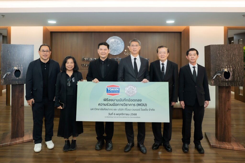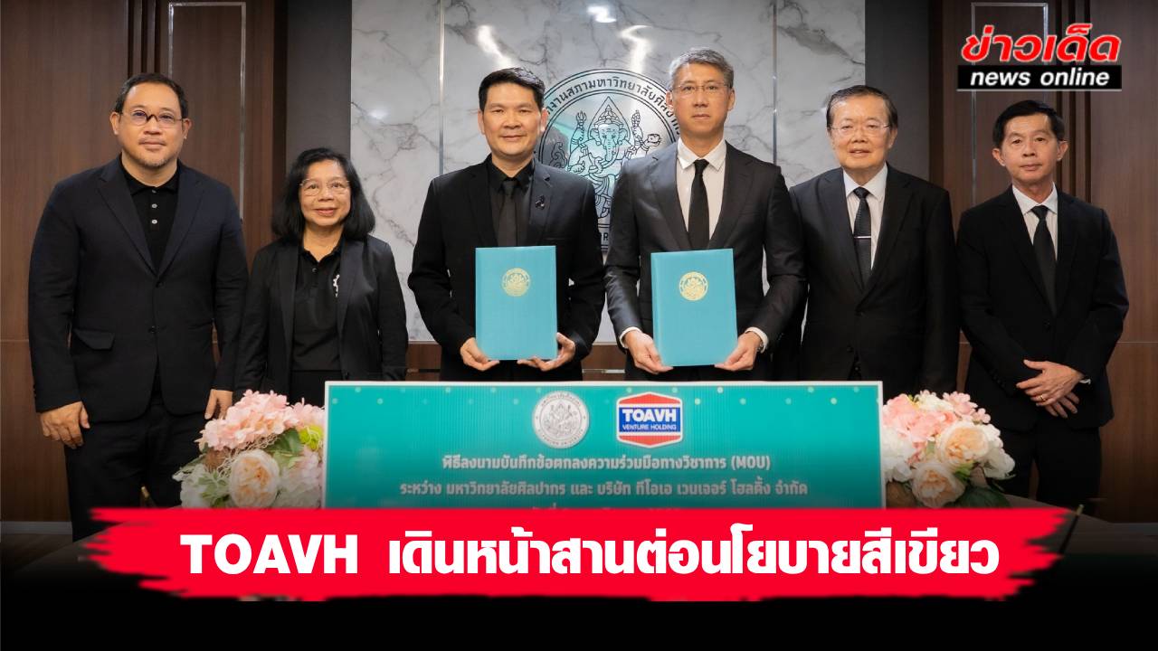 12 พฤศจิกายน 2568 : กลุ่มบริษัท ทีโอเอ เวนเจอร์ โฮลดิ้ง (TOA Venture Holding : TOAVH) เดินหน้าขับเคลื่อนองค์กรสู่ความยั่งยืน สานต่อนโยบายด้านสิ่งแวดล้อมอย่างต่อเนื่อง ล่าสุดได้ร่วมลงนามบันทึกข้อตกลงความร่วมมือทางวิชาการ (MOU) กับมหาวิทยาลัยศิลปากร เพื่อสนับสนุนการศึกษา วิจัยและพัฒนานวัตกรรมวัสดุทดแทนจากธรรมชาติ ต่อยอดการสร้างสรรผลิตภัณฑ์ใหม่ที่เป็นมิตรกับสิ่งแวดล้อม